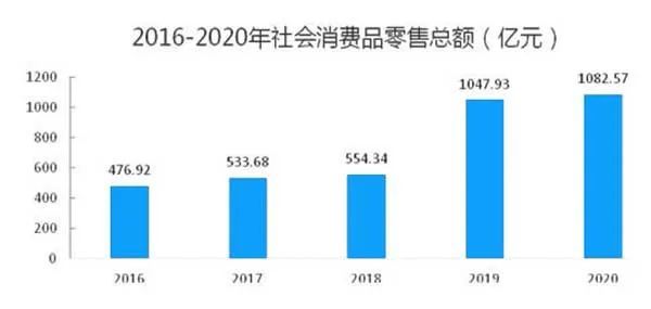 全年社会消费品零售总额1082.57亿元,比上年增长3.3%,分城乡看,城镇零售额854.2亿元,增长2.7%;乡村零售额228.3亿元,增长5.8%。