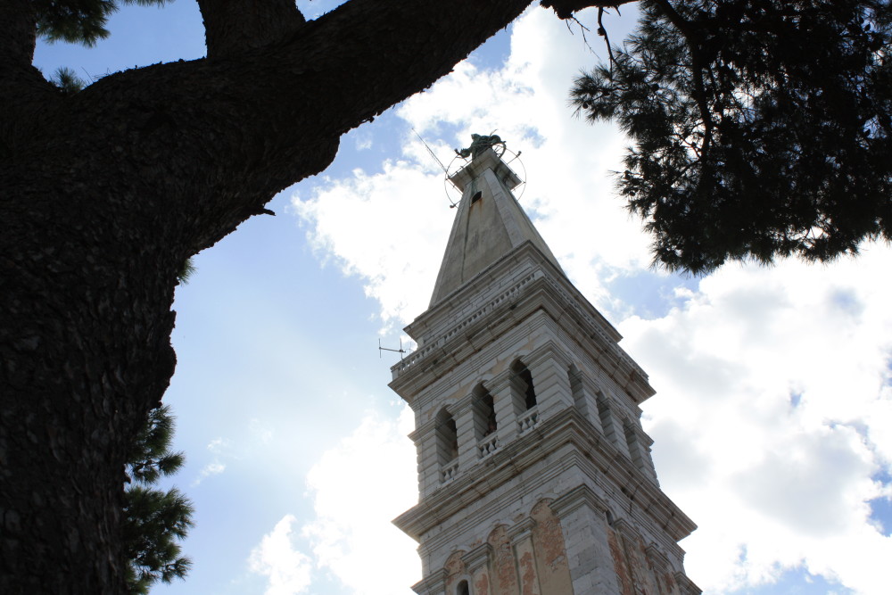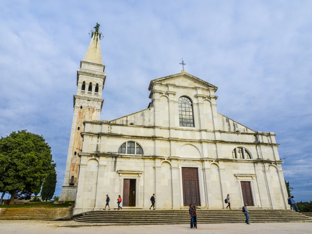 位于市中心广场的圣尤菲米娅教堂的钟楼是小镇的制高点,高度大约61米,随处可见的尖顶,便也就成为了罗维尼的标志性建筑。