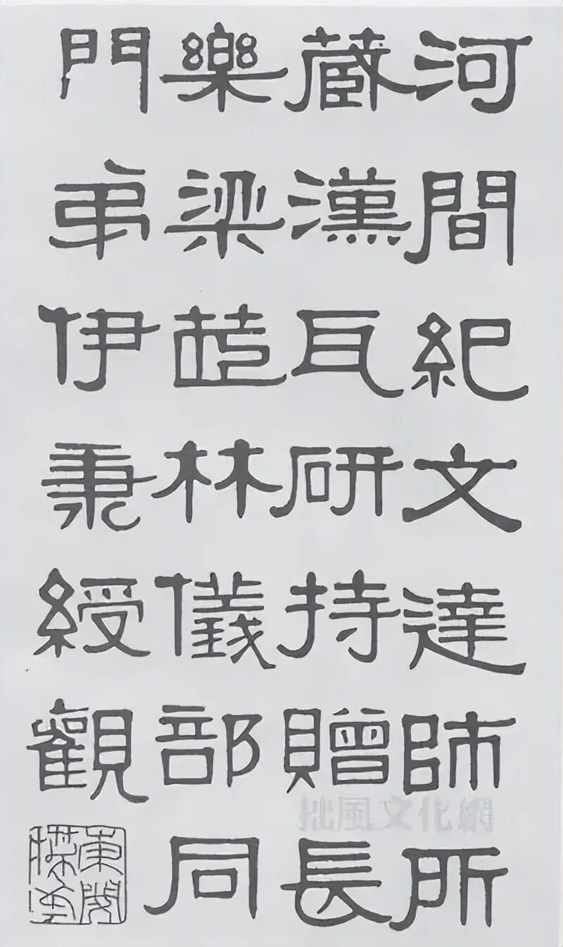 孙俪的隶书写出了伊秉绶那种气势与磅礴之气,尤其在工整程度上表现出色。虽然不能与伊秉绶相提并论,但她在书写中融入了自己的理解与情感,使隶书充满了张力和饱满的气息。她依然采用伊秉绶的写法,让字向四周扩散,提升了隶书书法的张力。
