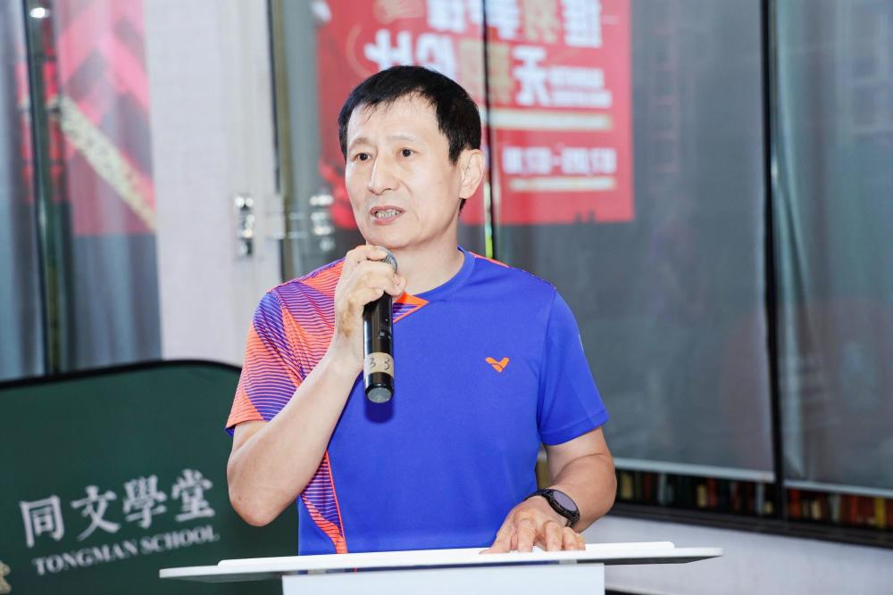 华外同文外国语学校党支部书记、总校长朱子平代表学校对林丹、谢杏芳的到来表示了热烈欢迎。他提到,世界冠军的加入将对热爱羽毛球的孩子们产生巨大的激励作用,在心中播下热爱的种子,而有了专业教练的指导,这份热爱将化为正确的方向,指引着孩子走得更远。
