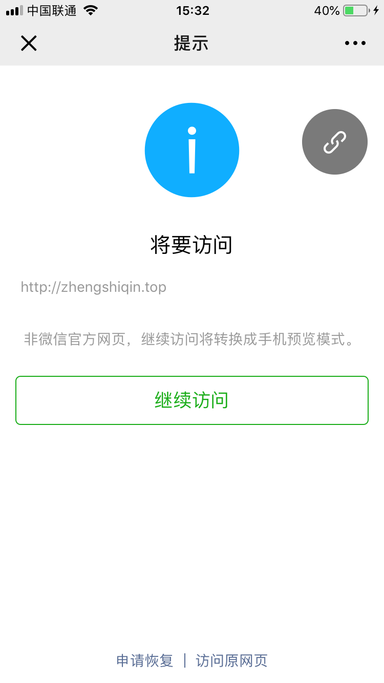 然而,海外的服务器是没有备案流程的,于是我去问了微信客服,得到的答复是没有备案的域名就没办法正常分享,在网上找了很多也没找到解决的方法,作罢。(但是朋友买的.com域名没有备案也没被限制,有点奇怪)