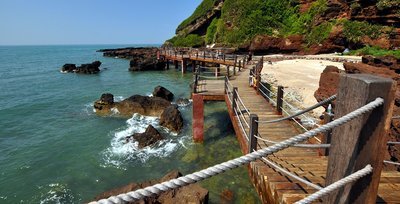 中国大型最年轻之一的火山岛,岛上岩奇洞深,风光旖旎,民风淳朴,素有“大蓬莱”仙岛之称。 这里景观资源丰富,有滴水丹屏、鳄鱼山火山公园,五彩滩等,其沿海海水碧蓝见底,海底活珊瑚、名贵海产瑰丽神奇,种类繁多。观赏太阳斜照在斜阳岛的全景的最佳地点。另有位于盛堂村的法国天主教堂、三婆庙及圣母庙等人文景观,印证了中西合璧的历史足迹。此外,环岛骑行也是游览岛屿的另一大特色,租上一辆自行车慢悠悠的欣赏各处风景,非常惬意。