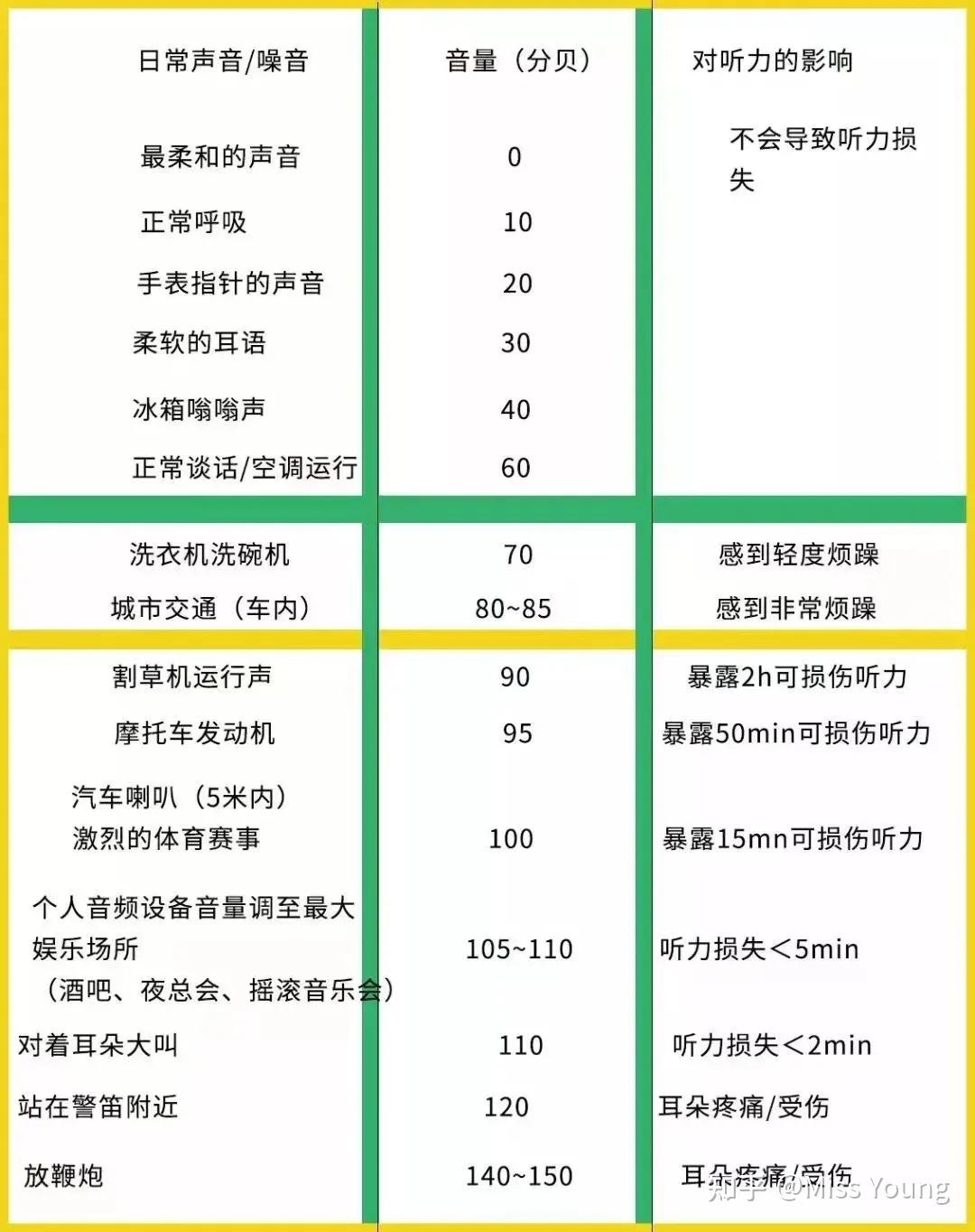 下面这张表是不同环境的声音大小,看看你所处环境,及时调整。
