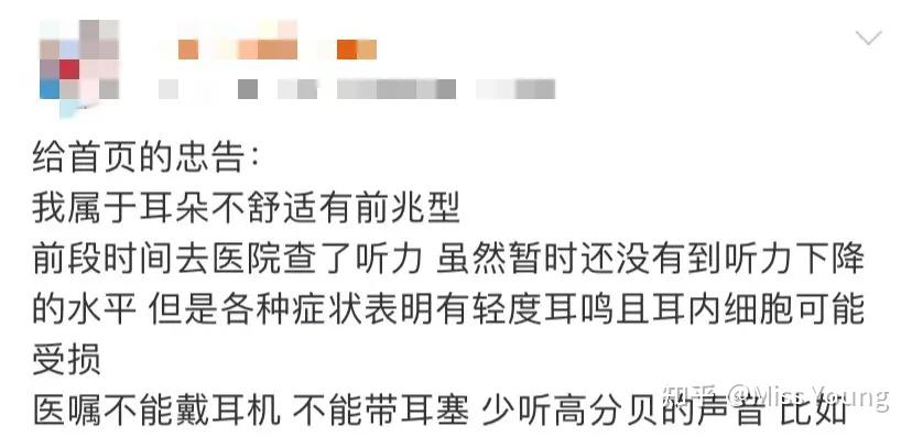 因为耳朵已经对这种声音耐受了,这并不是个好现象,它意味着较低的声音你可能就听不见了,因为耳朵被累到麻木,对这些刺激不再敏感。