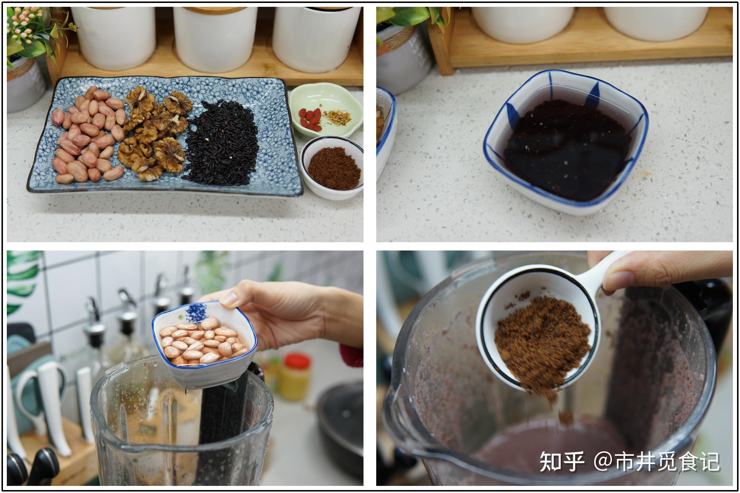 2、将核桃、花生、黑米一同倒入破壁机中,按米糊键打成糊状,20分钟左右就做好了。
