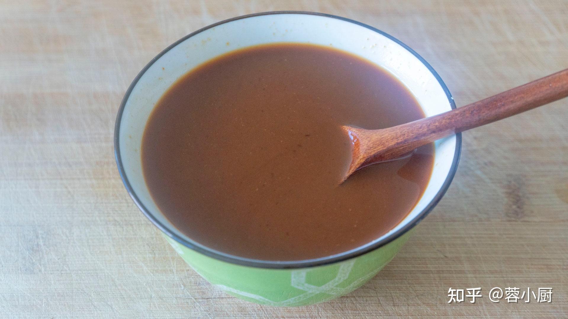 1、先来调个酱汁:碗中加入2勺生抽、1勺老抽、2勺蚝油、2勺黄豆酱、1勺白糖、1勺淀粉、半碗清水,搅拌均匀后先放一旁。