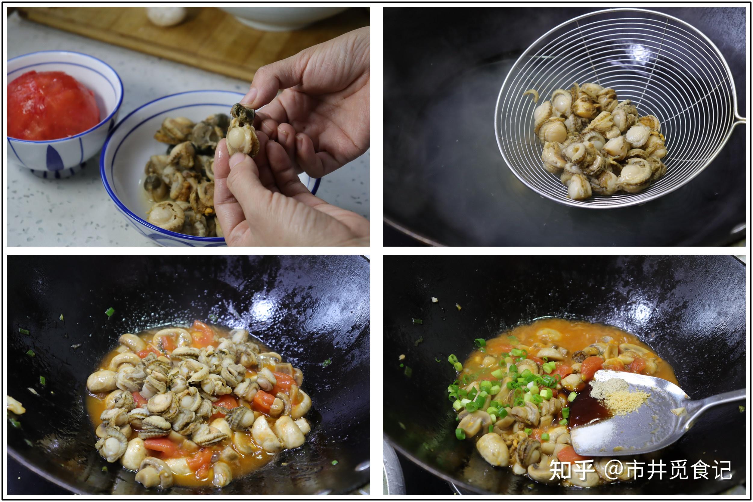 1、扇贝肉解冻后清洗干净,口菇对半切开,西红柿去皮切丁备用。