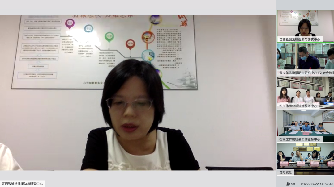 北京青少年法律援助与研究中心在业务指导和项目管理等方面发挥了重要作用,项目成果显著。作为项目的主要执行方,北京青少年法律援助与研究中心不但继续直接为未成年人提供法律服务,而且还成立了专门的项目管理办公室,从社会组织遴选、制度建设、业务指导和协调等方面开展了大量工作,为执行该项目的北京、贵州、四川、江西、河北、江苏六省(市)的六家社会组织积极提供专业咨询、案(事)件处理、专题培训和社会倡导等多项指导工作。截至2022年6月18日,六家社会组织在2个月内共解答专业咨询258件,处理涉未成年人案(事)件65件,开展专题培训和普法宣传37场,发布抖音短视频125条,各项工作进展顺利。