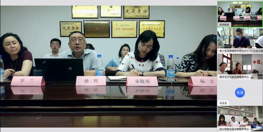 贵州省民政厅儿童福利处四级调研员罗兰、贵州省检察院第九检察部副主任宋晓琼,石家庄市民政局儿童福利处处长严晓林、石家庄市未成年人救助保护中心主任康亚明、共青团石家庄市委权益部部长李辉以及贵州、河北、四川、江苏、江西五省示范性社会组织的机构负责人和项目团队成员参加了线上会议。