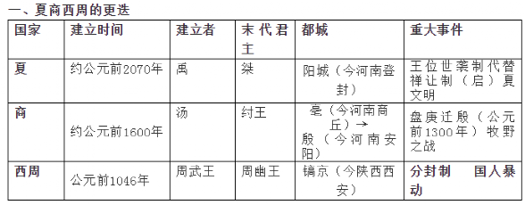 三、王位世袭制代替了禅让制,由“公天下”到“家天下”,夏启。