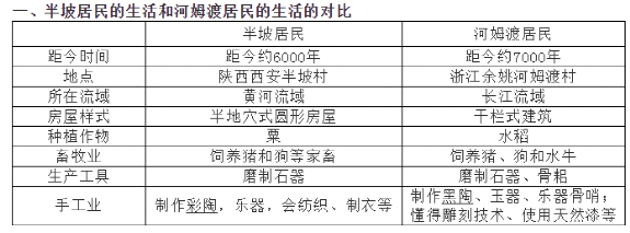 一、半坡居民的生活和河姆渡居民的生活的对比