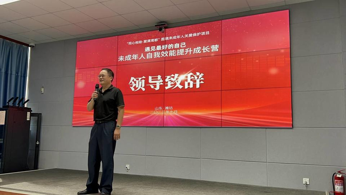 7月15日,“遇见最好的自己”—未成年人自我效能提升成长营在山东科技职业学院开营,四十位困境未成年人从潍坊市各县市区来到现场参加开营仪式。开营仪式上,潍坊市基本民生保障服务中心儿童保护科科长殷永强对参加此次成长营的营员们提出了热切的期盼。他说,这八天时间里的每个活动对于同学们都是一种挑战,希望同学们要积极踊跃地参加活动,勇于战胜它,珍惜这次夏令营机会。开营仪式上同时举行了成长夏令营授旗仪式。