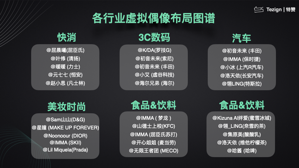 虚拟偶像:根据不同企业的文化制定一个身份(模特、歌手、演员、网红、游戏高手),拥有鲜明的个性,才艺设定,活跃于各大社交平台、视频平台、综艺节目等,通过积累流量和人气,获得更多展示机会。