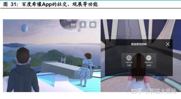 以百度的希壤为例,百度最新推出的社交APP希壤正式上线,旨在打造一个身份认 同、跨越虚拟与现实、永久续存的多人互动虚拟世界,在这个世界里,百度只提供基 础设施,把这个世界的开发权交给第三方开发者以及合作伙伴,应用场景包括VR教 育、VR营销、VR云展会等等。从平台定位看,开放性世界特性初具元宇宙世界雏形, 但目前希壤的开发进度仍处在早期阶段,未来想要吸引更多合作企业在希壤平台打 造作为现实世界映射的展会、展厅、乃至更多更复杂的现实场景等等,需要平台首 先吸引足够大的用户群体。从定位看,百度希望从社交角度切入元宇宙,但国内社 交领域以腾讯的微信、QQ为主,吸引了庞大用户群体,社交关系更加稳固。从当前 情况看,希壤的虚拟人形象还较为单一、动作表情僵硬,社交属性不够成熟,平台仍 需时间迭代出可行的运行模式与商业模式以吸引更多用户。(报告来源:未来智库)