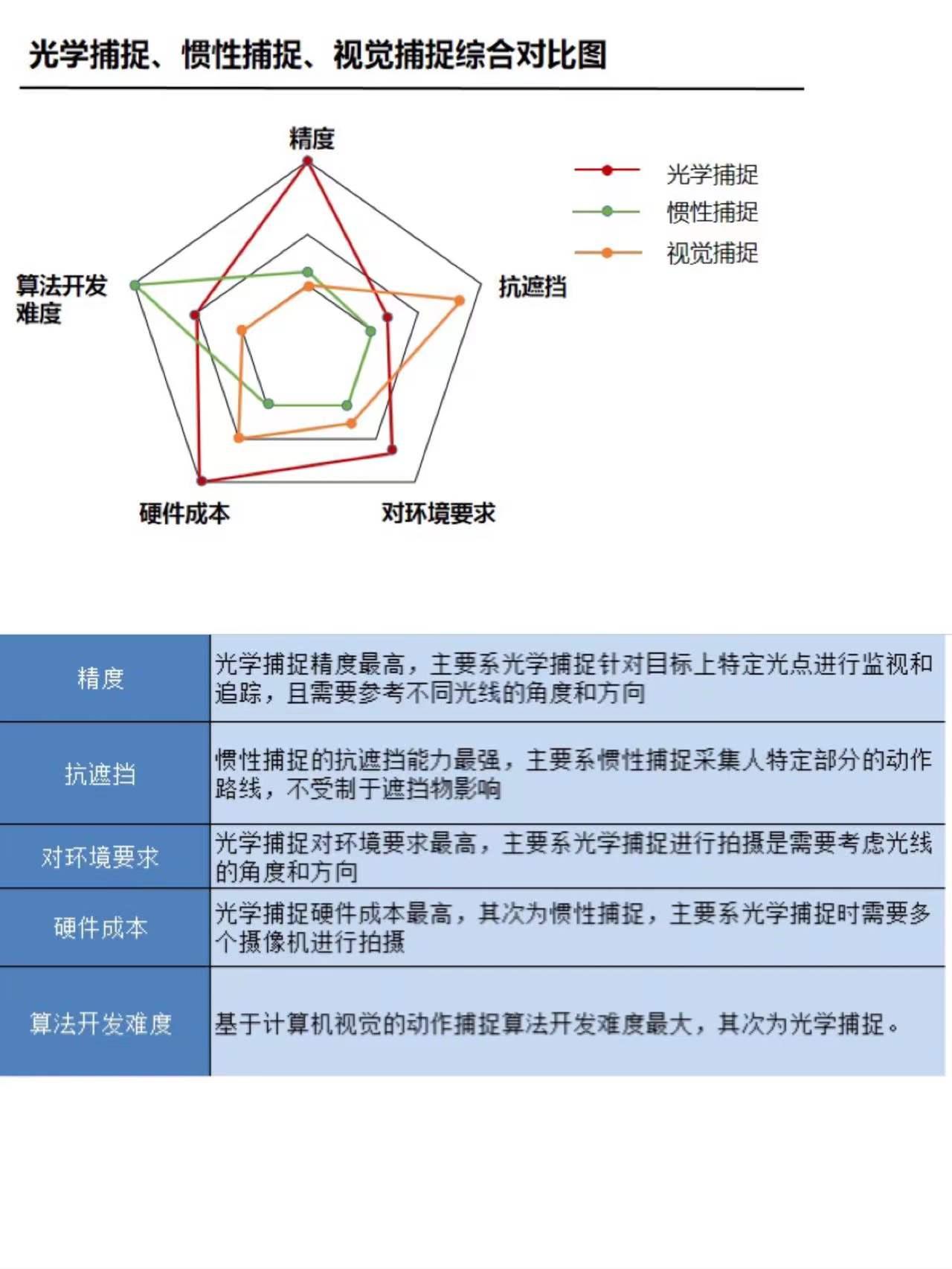 光学捕捉、惯性捕捉、视觉捕捉对比图