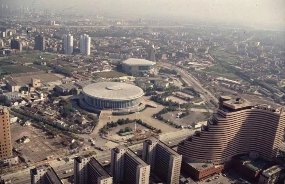 近日,一张照片在朋友圈流传:多年前的万体馆周边,还是片片农田。造型独特的华亭宾馆在“火柴盒”建筑中显得很“突兀”。中山西路以外的天际线十分清晰,远处的黄浦江尽收眼底。