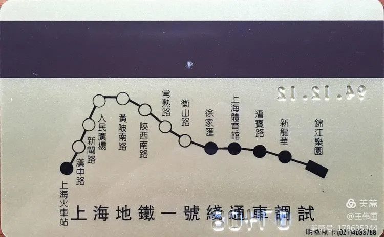 △1994年12月12日,地铁公司发行一号线通车调试纪念金卡(王伟国 图)