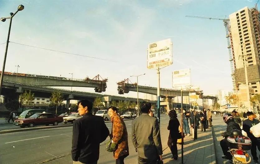 △1999年,中山南路漕溪路口,正在建设中的3号线高架轨道(陆杰摄)