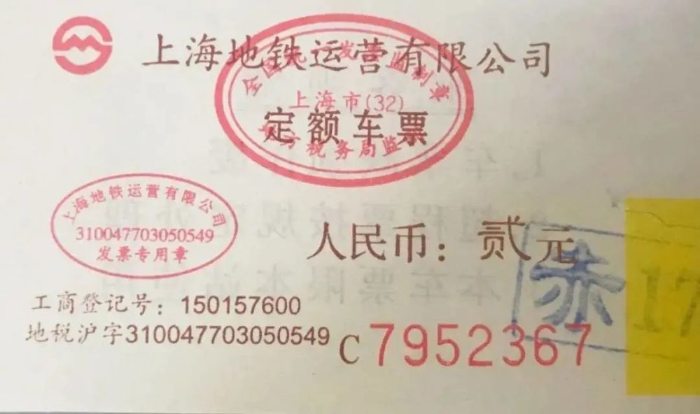 △3号线开通初期使用的纸质车票。开通初期票价为2元可坐9站,9站以上3元。2003年11月1日起与其余线路统一票价。