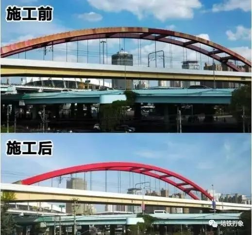 △2019年11月,3号线漕溪路“彩虹桥”涂装施工。