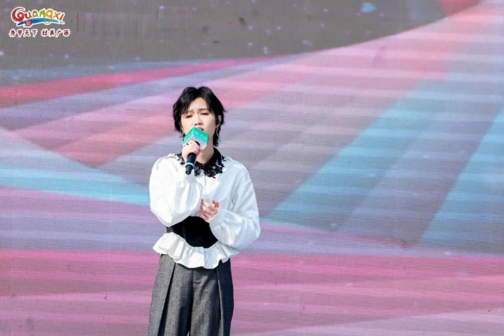 ▲“广西文化旅游推广大使”梁玉莹登台献唱歌曲《十年如烟》
