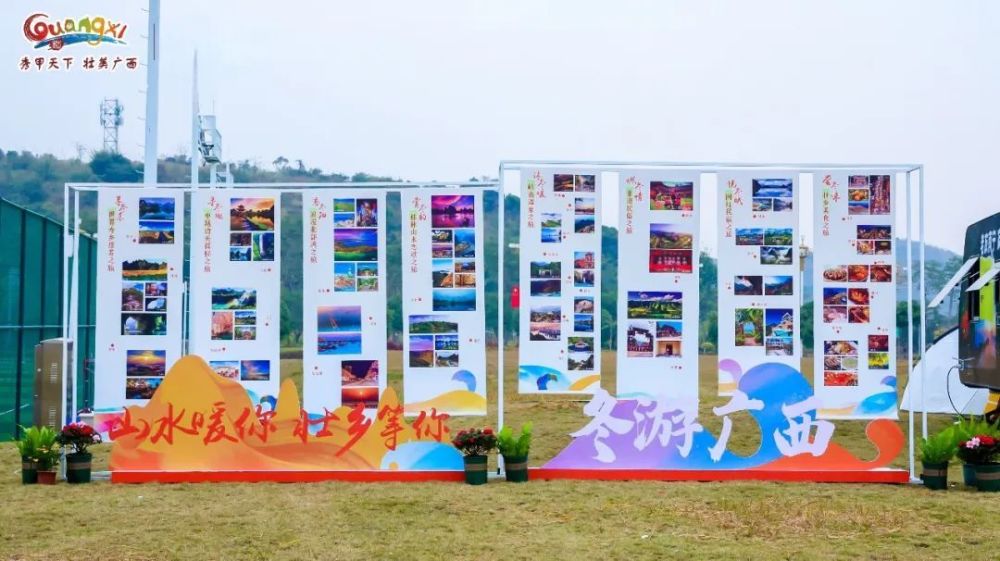 ▲“山水暖你 壮乡等你——冬游广西”八大主题线路展板