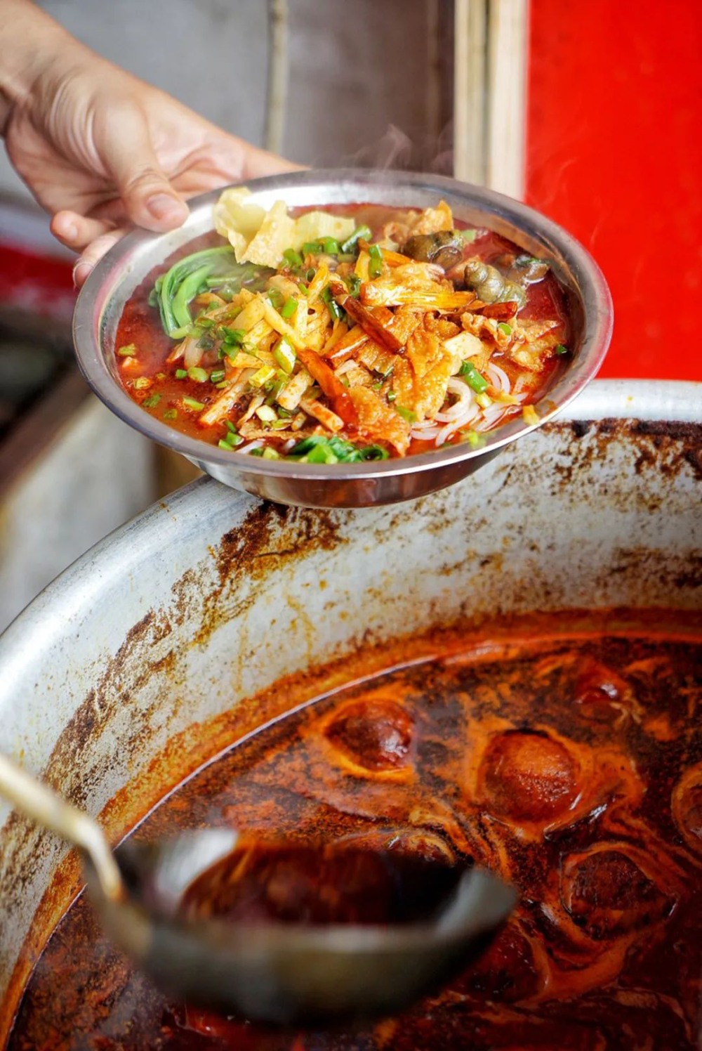 在柳州的街头来一碗地道热辣的螺蛳粉,爽滑劲道的粉条,鲜香浓郁的螺汤,酸笋、腐竹、花生配菜丰富,一口一个满足。