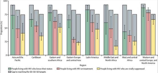 图1 2016年各地区HIV感染者知晓状况、治疗覆盖率和病毒载量抑制情况:对各地区HIV检测和治疗级联的比较揭示了不同的进展模式。西欧、中欧和北美正在接近全球目标;拉丁美洲、非洲东部和南部在这一梯级上表现出了高水平的成就;东欧和中亚、中东和北非、西非和中非都明显偏离了轨道。资料来源:联合国艾滋病规划署(UNAIDS)2017年特别分析在世界新发HIV/AIDS感染呈下降的趋势下(图1),中国的新发感染还在不断增加,显著的年轻化趋势在预防和告知上都让政策制定部门和医疗防控部门倍感压力。因此,在HIV/AIDS患者隐私权与配偶/性伴侣健康权的博弈中,更应该旗帜鲜明摆明立场:HIV/AIDS是一种传染病,HIV/AIDS患者有责任通过如实告知、积极参与治疗等有效手段,确保配偶/性伴侣及其他公众的健康权,医护人员在必要时应该清楚地如实告知病人/感染者本人,以及他们有道德和法律义务告知配偶性伴侣其状况。同时,在执行层面上,我们呼吁参照联合国或世界卫生组织的相关《指引》(guideline),呼唤更符合中国国情、更符合感染群体特点、更具体实操的告知指引的出台,规范地指导患者、感染者、医护人员进行告知,以确保公众健康为目的,尽可能地保障HIV/AIDS患者的隐私权。