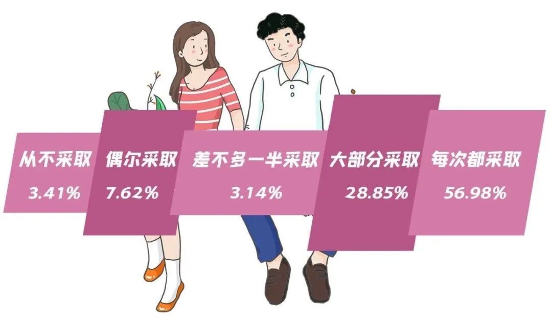 大学生发生性行为时,每次都采取安全措施的,只有一半多一点的人。