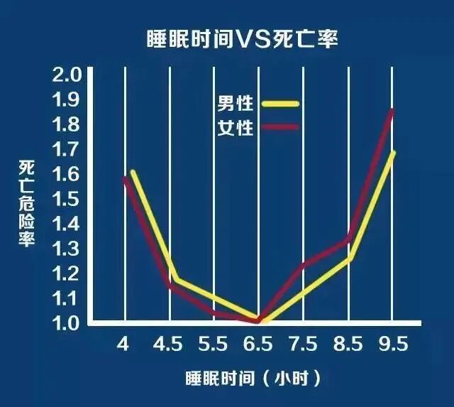 结果发现成年人每天低于4.5小时或高于9.4小时的睡眠时间,死亡率会显著提高,而睡眠时间在6.5小时至9.4小时,死亡率最低,这也就意味着,睡眠时间的长短可能决定着寿命的长短。