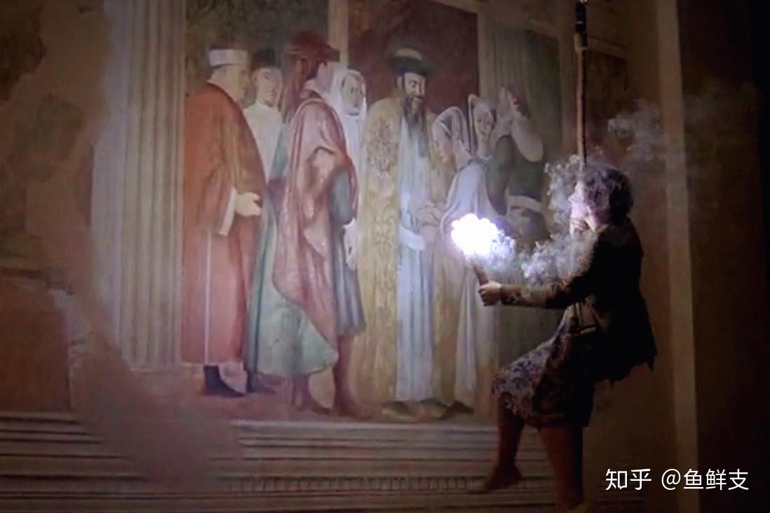 一是基普带着汉娜去教堂里约会。他用活动的绳索把汉娜高高拉起,去近距离地欣赏留存了数百年的壁画。那一刻,汉娜眼里的光芒令人动容。壁画美哭了,人也是。
