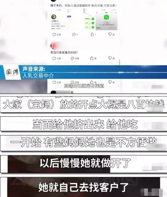 对于缺钱的 “ 奶妈们 ” 来说,不需要花费更多的时间和精力去挣钱,一个月就能轻松收入好几万。在巨大的利益诱惑下,那些当初只愿意提供冷冻奶的“奶妈”,很容易就会被动摇,转而提供一些色情服务。