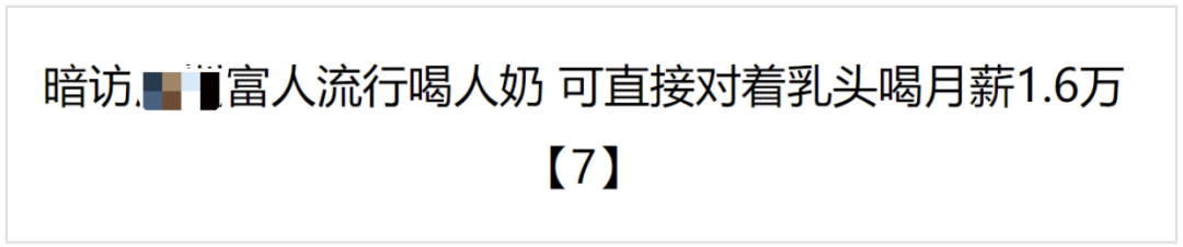 之前有记者调查,某地区富人圈流行喝人奶。这些富人不是按次消费,而是不惜重金,按月包养。