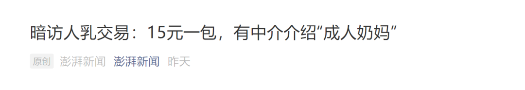 所以吃奶是掩饰,嫖娼才是本意。03前几年在舆论的围剿下,这个见不得光的产业看似在大众视野里消失。却没想到时隔几年,“成人奶妈”再次卷土重来。前几天,澎湃发布一篇报道《暗访人乳交易:15元一包,有中介介绍“成人奶妈”》。