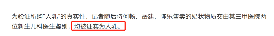 而暗访记者几经周折花费196元的价格,购买了800毫升“人乳冻奶”送检后,结果显示是人乳。