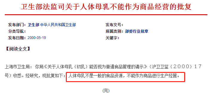 我国《卫生部法监司关于人体母乳不能作为商品经营的批复》曾明确规定:人体母乳不能作为商品进行生产经营。为什么国家要明令禁止?因为“人乳交易”存在很多健康隐患。那些出售母乳的宝妈,她们从事这类交易,大多是通过中介,或者是被之前出售过母乳的宝妈,拉进交易群里的。