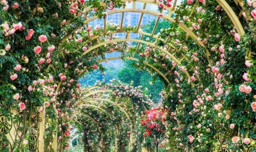 必打卡项目三:玫瑰园去年4月中旬,成都漫花庄园举办玫瑰节,各色玫瑰花竞相绽放,吸引各地游客前来打卡拍照。该庄园汇集了来自世界各地700余种顶级玫瑰品种,每年四月中旬至五月中旬都是玫瑰盛放的时节,长达千米的“玫瑰花墙”亿万朵玫瑰争艳,漫山遍野尽显浪漫。将“浪漫”二字极致谱写,带您走进童话中才有的玫瑰花海。