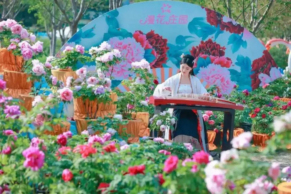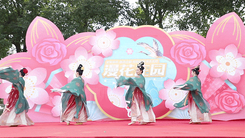 漫花庄园近日举行花朝节活动,邀请了四川汉服协会到园内游园表演,在园内的主舞台,还有汉服表演、具有互动性的 汉服走秀、传统的 汉婚展示,让游客感受跨越千年的国风潮流,妙会春日浪漫,领略国乐风韵。