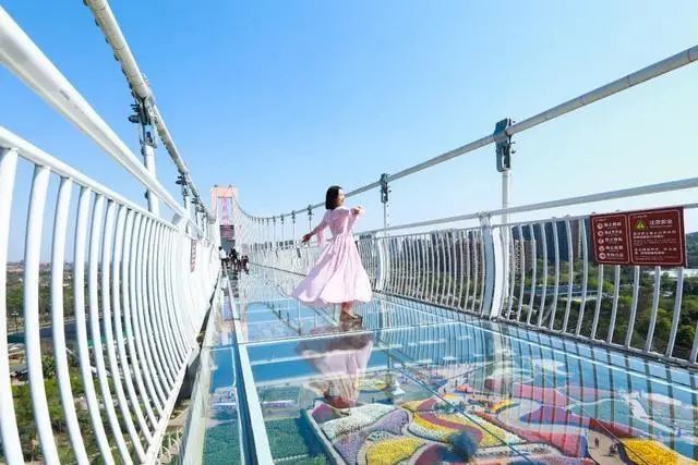 采用步步生花新奇特效,与桥下的花海景观相映生辉。可以一览整个园内的景象。站在高空玻璃桥上欣赏到不同的风景,整个花田美轮美奂、宛若仙境,720度无遮挡观景体验让人惊叹不已。