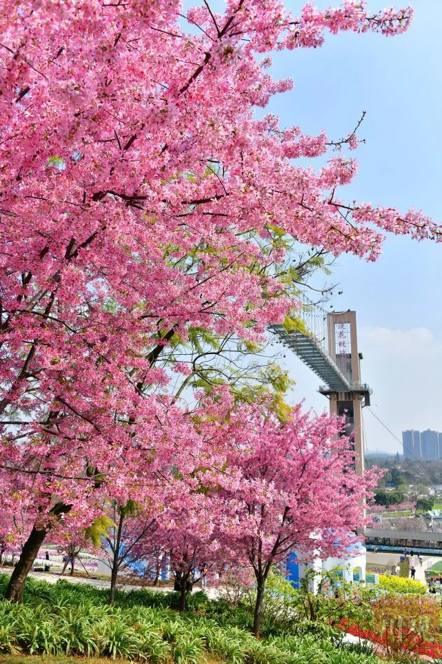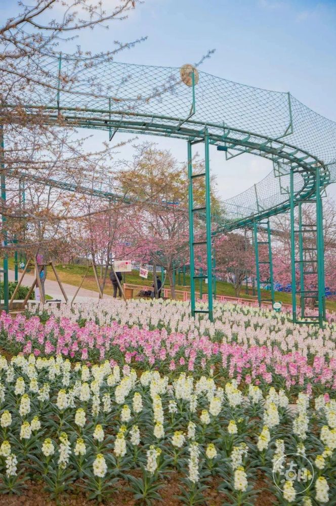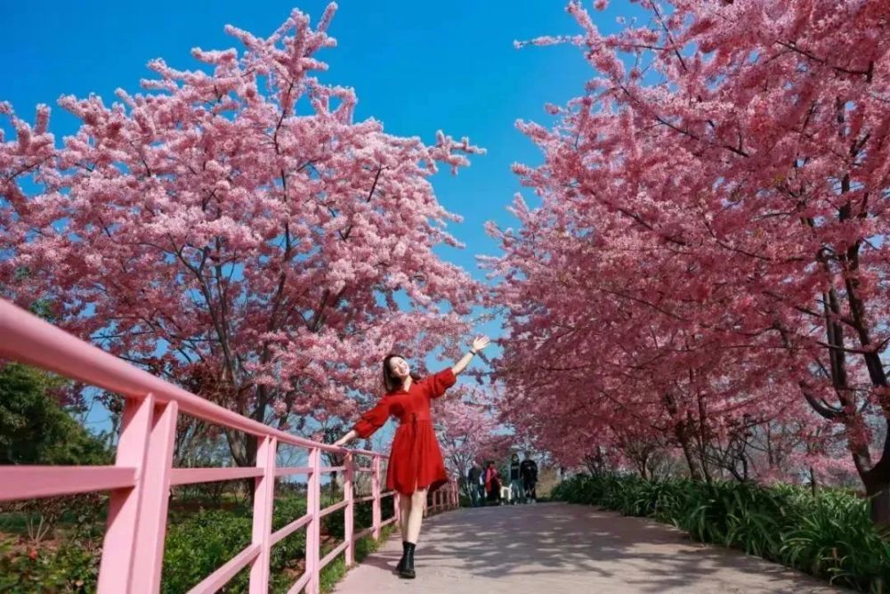 必打卡项目一:粉红樱花海三月的漫花庄园亿万粉色樱花灼灼绽放,更有粉红樱花雨,为游客献上春日限定浪漫,在园区种植了大片的樱花,一进入便坠入唯美又浪漫的粉樱花海,沉浸于此,唤起人们的少女心。