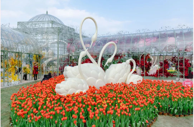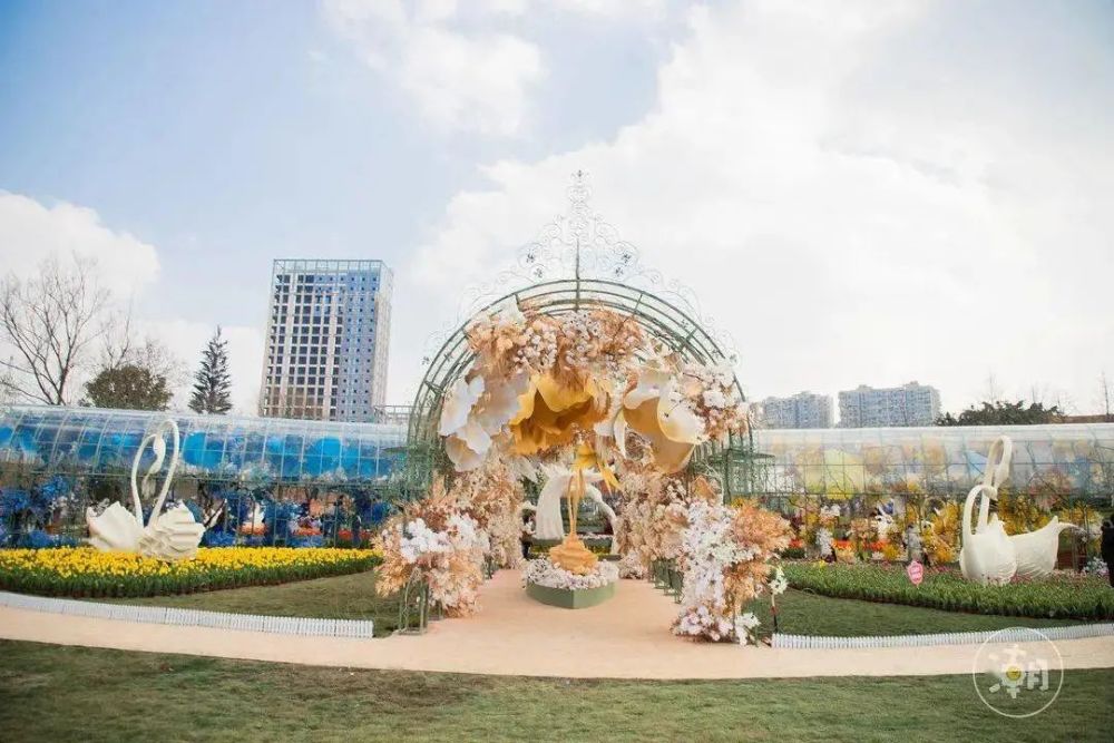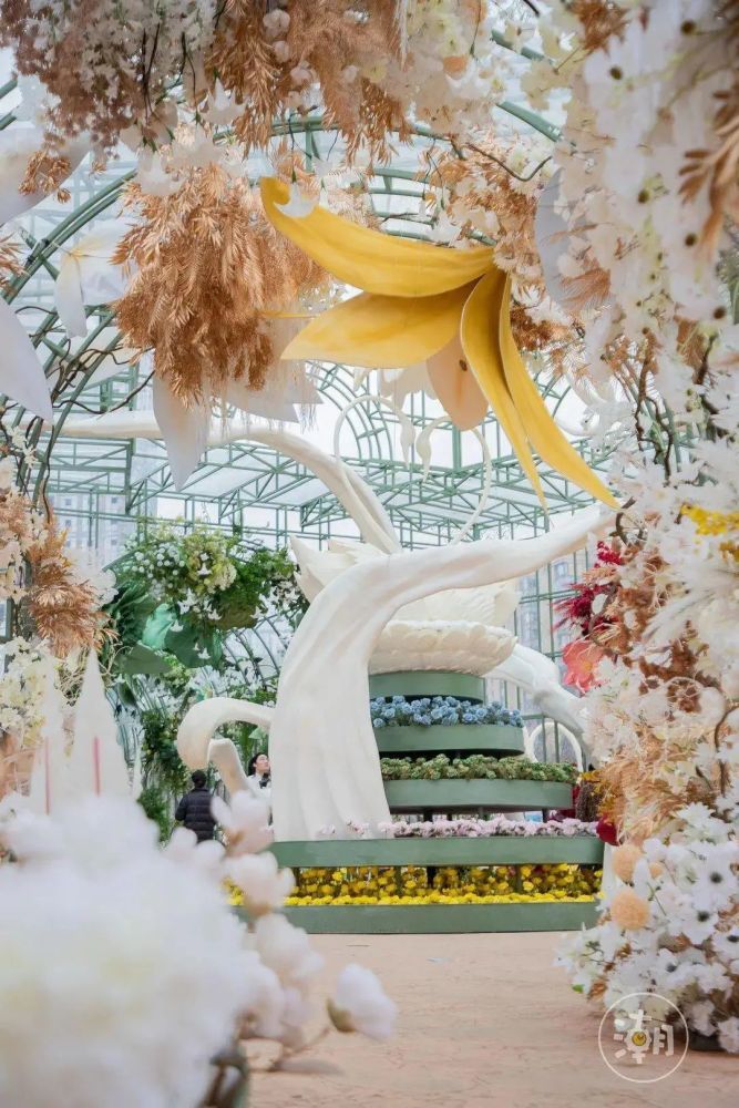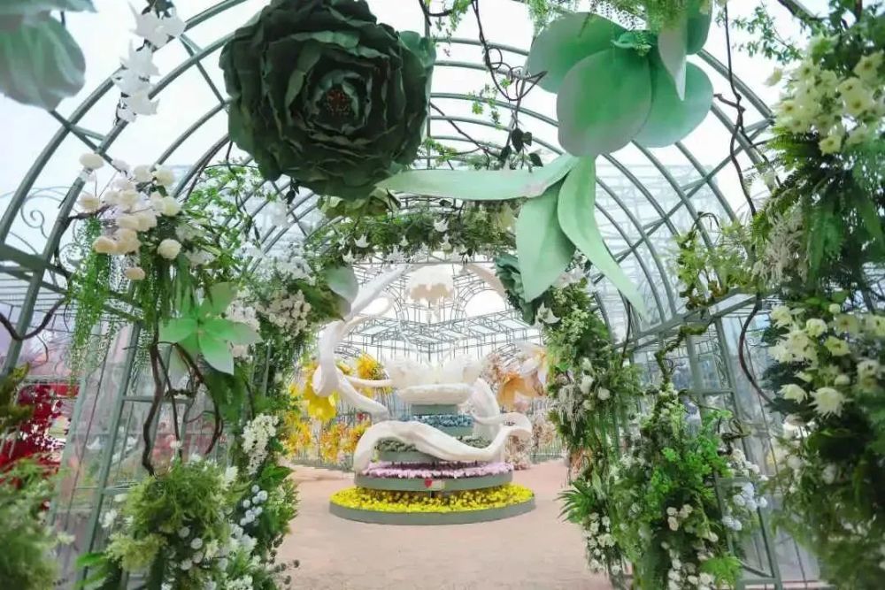 必打卡项目三:花之宫殿今年漫花庄园还斥资百万打造了梦幻花之宫殿,将天鹅和永生花直接搬到了玻璃房里,带你沉浸式体验花之仙境。唯美的花之宫殿,更是给人大秀现场的震撼感受,五个不同颜色的花廊,代表着樱花、郁金香、百合、玫瑰,浪漫而充满神秘