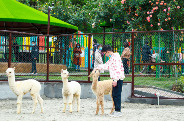 萌宝牧场和游乐园新引进的小矮马、小羊驼、雪域牦牛等数百种可爱萌宝,与到来的游客亲密互动。多达17项游乐项目,让游客花式玩转整个园区,不少游客带着家人在这里体验到了难得的家庭欢乐时光。