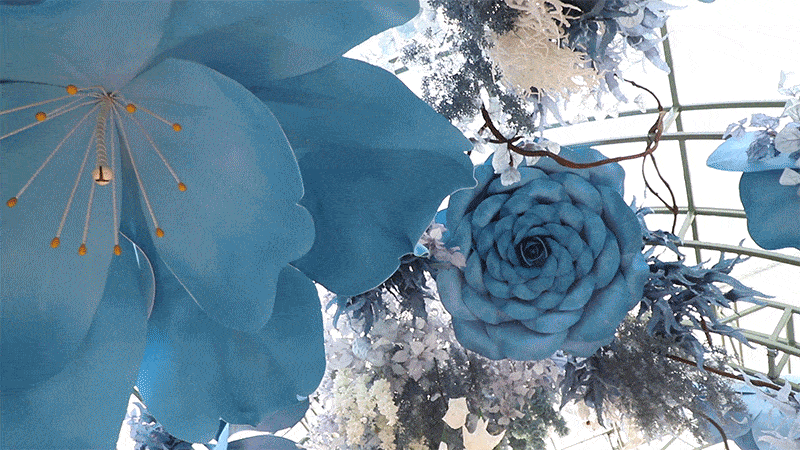 整座花之宫殿外观都以纯白玻璃建筑,优雅的天鹅向广袤的穹顶无限延伸,永生花如同瀑布一般倾斜而下,堪称现实版的梦幻花园。环顾全景,9999朵永生花齐齐“绽放”,复刻法国“香奈儿”大秀现场,站在花朵中央,你就是超模,各种大片信手拈来。