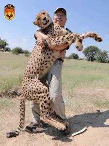 花豹完全是另一种生物,战斗力远远超过猎豹。那些伤人杀人的案例,全都是花豹做的好事,不是猎豹。