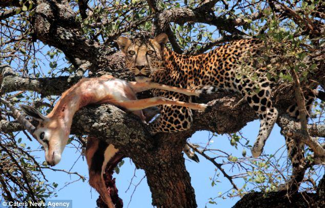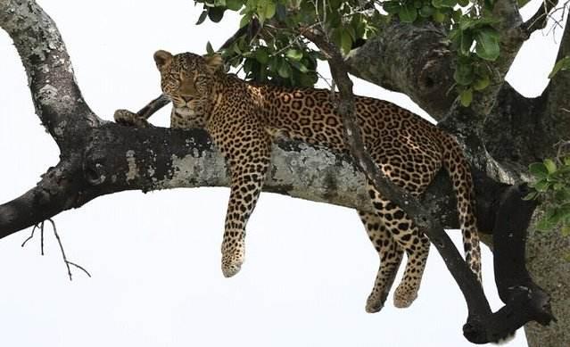 有这样的爪子,所以猎豹利用惯性可以轻松上树,只不过不能像花豹那样带着猎物一下一下的爬树罢了。