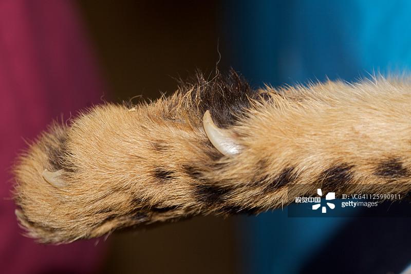 犬科是没有猫科动物的利爪的,下面展示猎豹的爪子。我们都知道为了更好的抓地,猎豹爪不能收缩,所以磨得比较钝,那么它是不是就没有攻击力了呢?