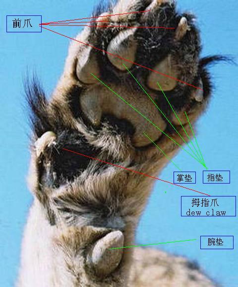 虽然猎豹的爪不如花豹和老虎,但是对一个赤裸着身子的人类来说依然很具威胁啊!而且猎豹的拇指下的爪是可以伸缩的,而且比较长,可以帮助勾住并切割猎物,经常看动物世界的童鞋都知道,有时候猎豹追到猎物,猎物身上就突然被拉开了一道口子,这就是拇指爪的功劳。