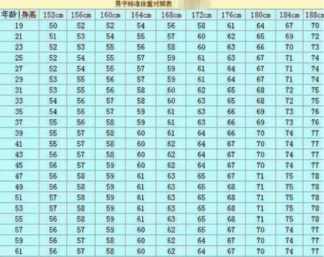 男性152-188cm标准体重对照表,若你“达标”,恭喜,还不算胖