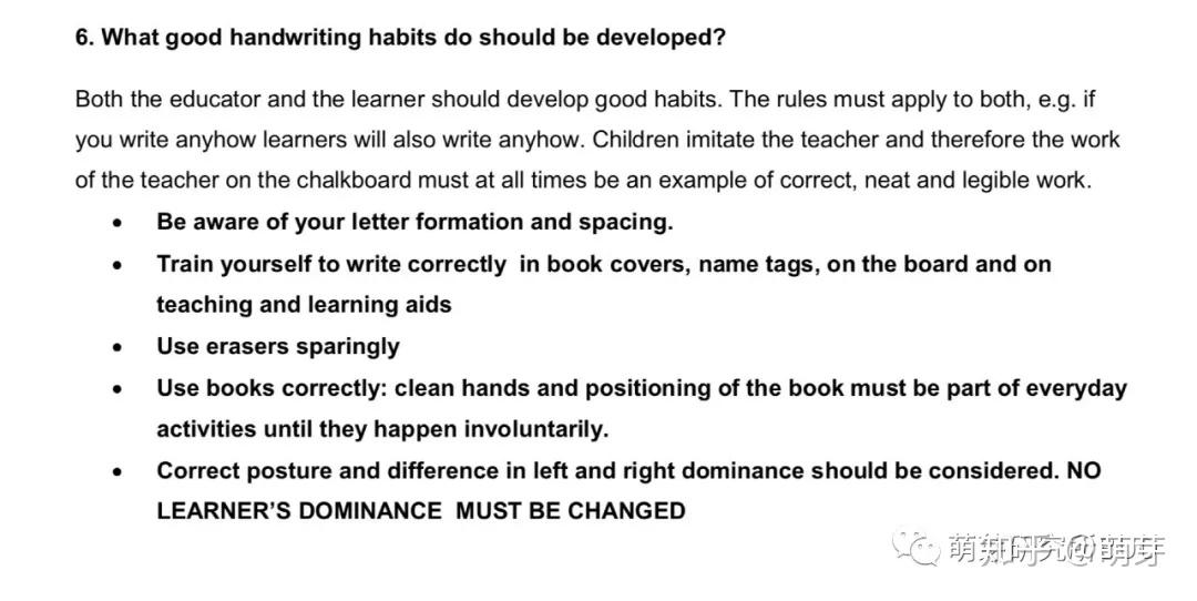 Correct posture and difference in left and right dominanceshould be considered. NO LEARNER’S DOMINANCE MUST BE CHANGED无论孩子使用左手还是右手书写,他们都能学习到正确的姿势和了解不同之处。不要勉强孩子改变左右手使用习惯。