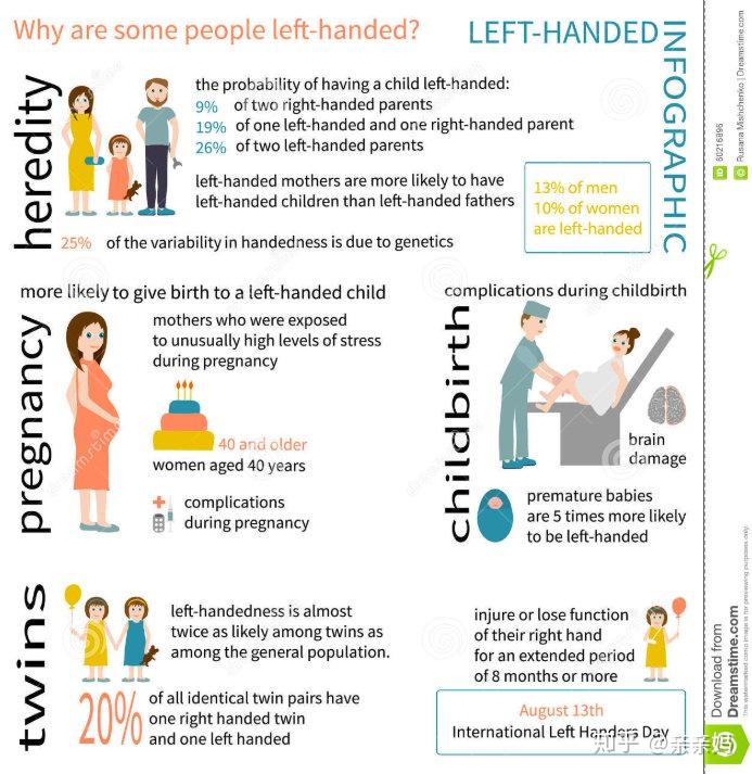左利手在双胞胎中是一般人群的2倍,20%的同卵双胞胎中,有一个是左利手,另一个则是右利手